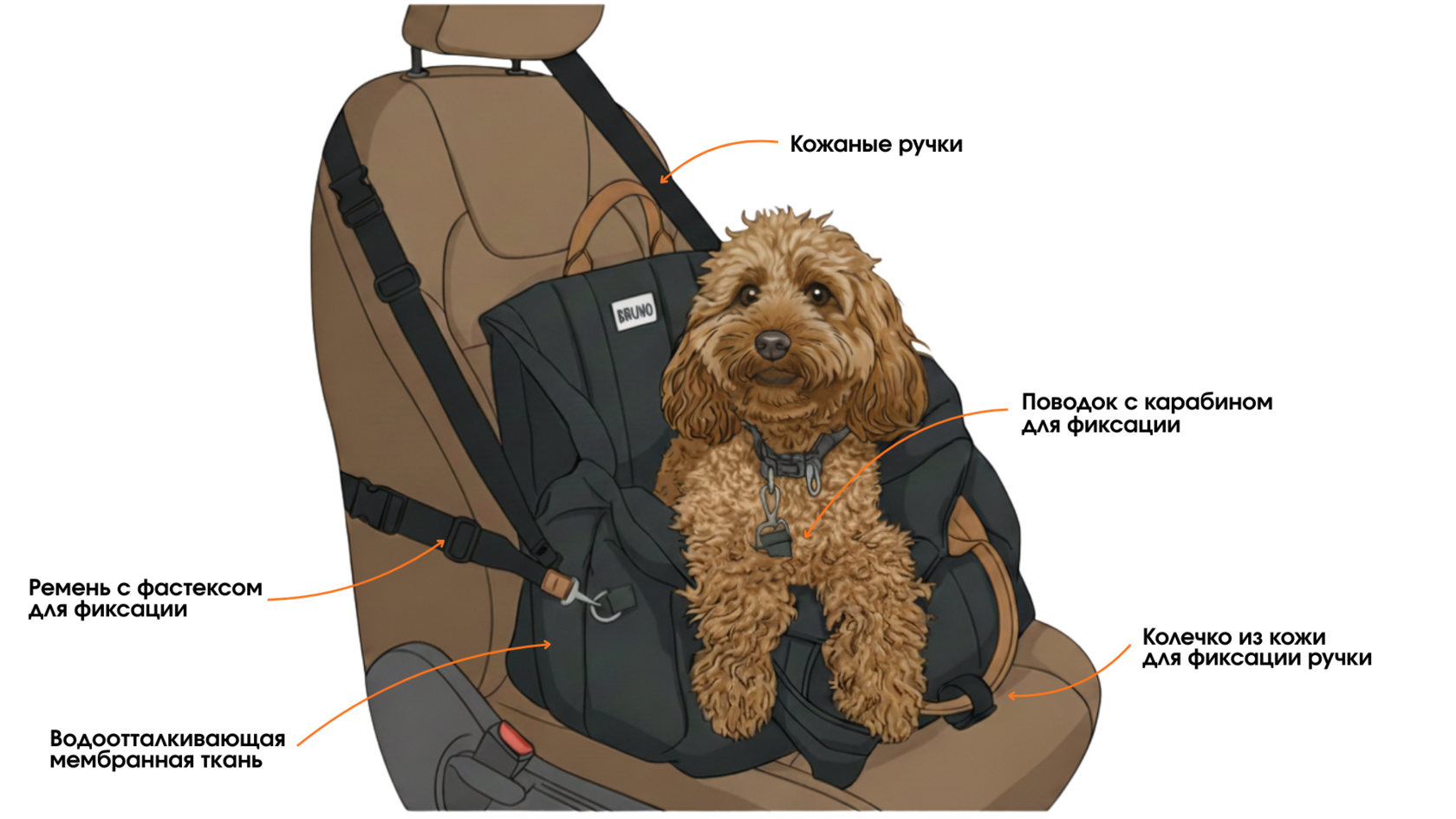Забота о безопасности и комфорте вашего питомца — превыше всего! Автокресло для собаки не только защищает вашего питомца в дороге, предотвращая травмы и стресс, но и делает путешествие приятным и спокойным для всей семьи. К сиденью кресло крепится с помощью длинного ремня: обхватив полностью переднее или закрепив вокруг подголовника на заднем. А собачку, для надежности, можно пристегнуть стропой с карабином к шлейке. Автокресло также можно использовать как переноску, в ней есть длинные дополнительные ручки для вашего удобства.